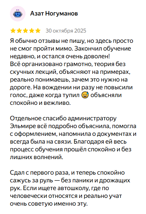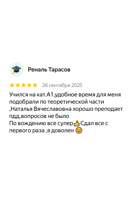 Возможность выбора гибкого расписания для теории и вождения, включая индивидуальные занятия.